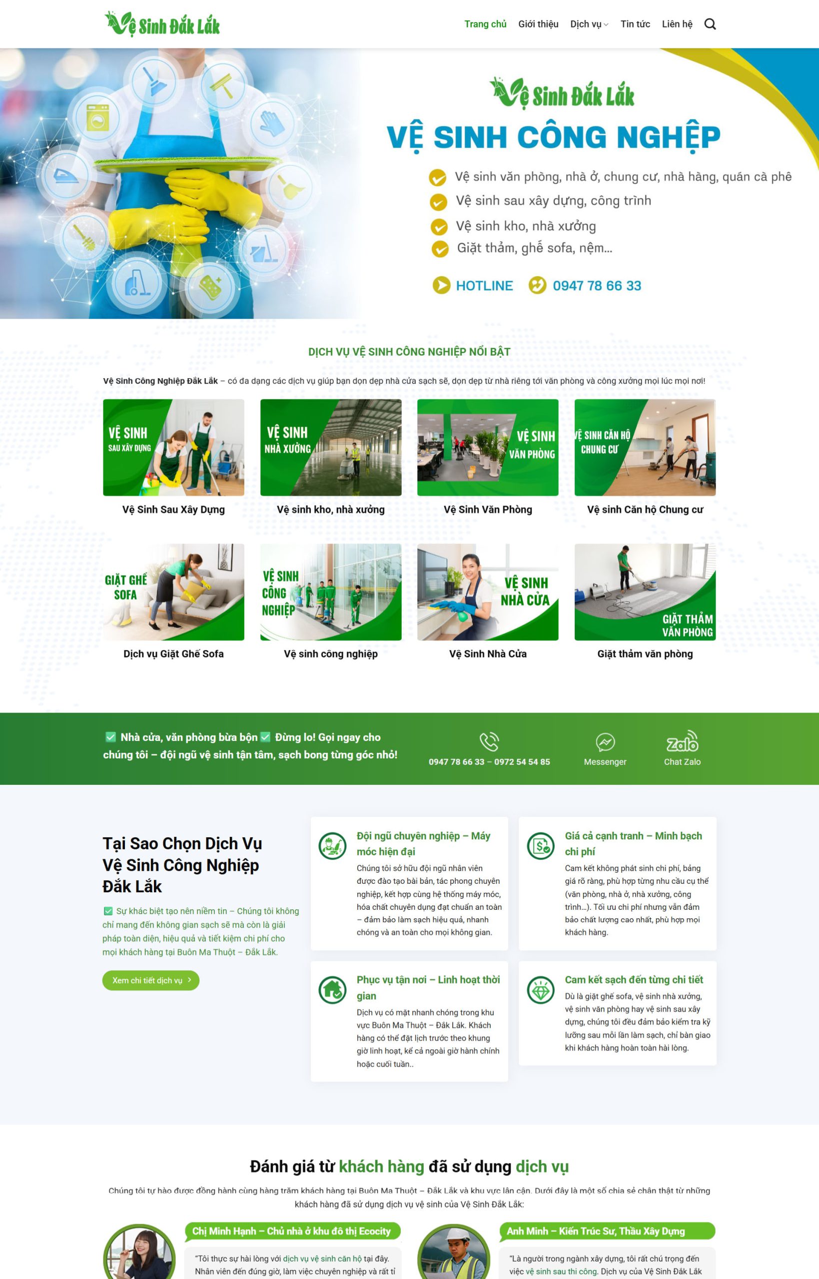 - Trang dịch vụ rõ ràng: vệ sinh văn phòng, nhà xưởng, giặt thảm, sofa…
